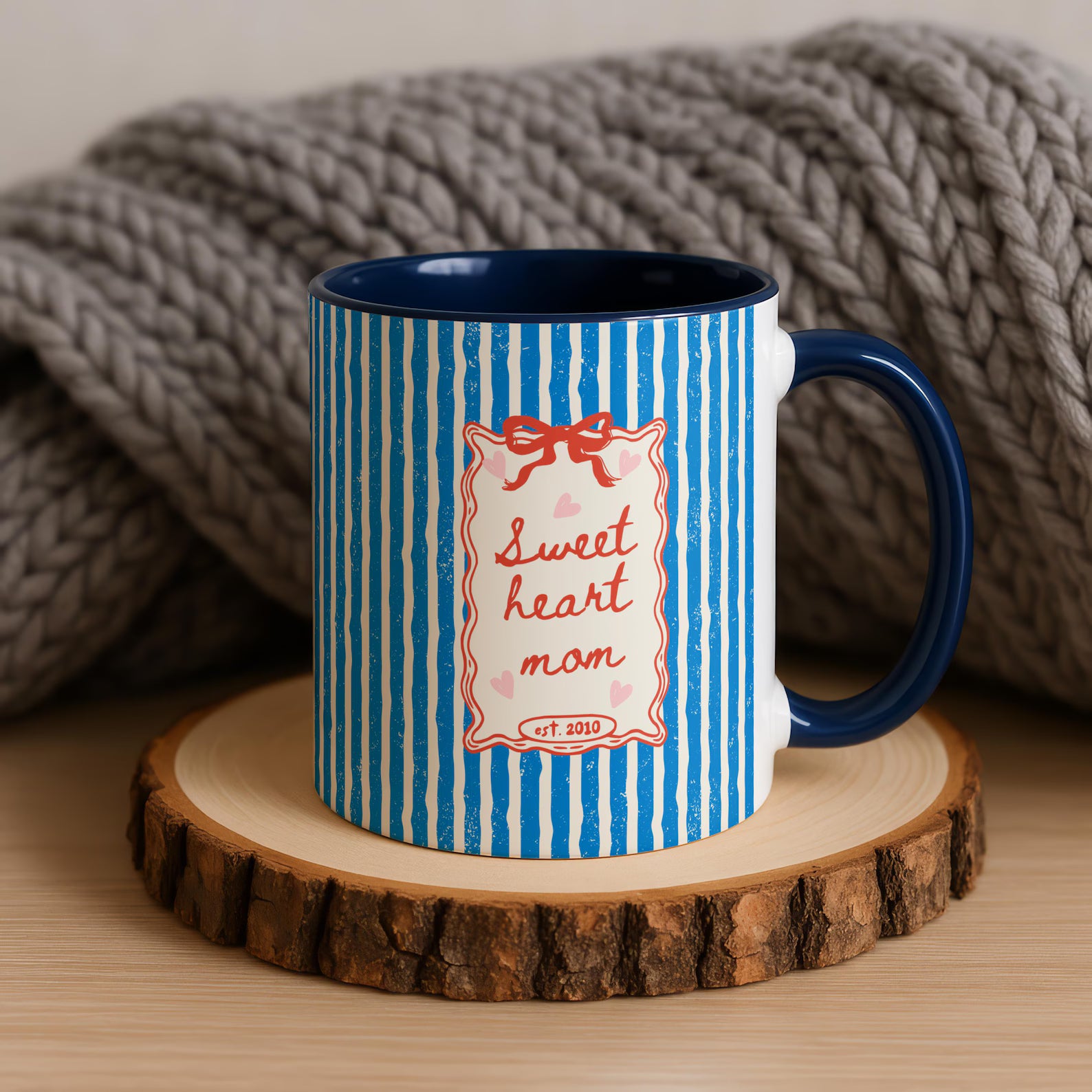 Sweetheart Mom Mug – Vintage Pink Striped Coffee Mug for Moms